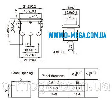 Розміри посадкового отвору 19,0 * 13,0 мм. (вмик.